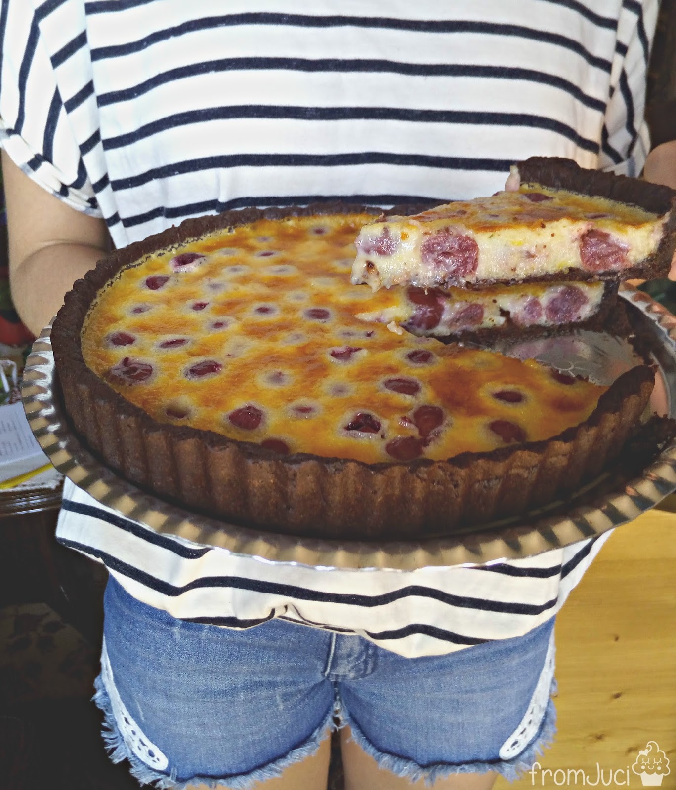 A tésztához a hideg kockára vágott vajat a liszttel és sóval, cukorral összemorzsoljuk az ujjbegyeinkkel és hozzáadjuk a hideg vizet, majd tésztává gyúrjuk. Lisztezett felületen kinyújtjuk, beleegyengetjük a piteformába. Kibéleljük a tésztát alufóliával és nehezéket teszünk rá (bab, lencse, stb), 180 fokos légkeveréses sütőben “vakon” sütjük 20 percig, majd az alufólia és nehezék nélkül további 15 percig.